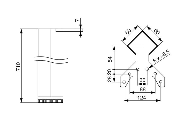 - Stolová noha, čtvercová, 60x60/H710 mm, eloxovaný hliník