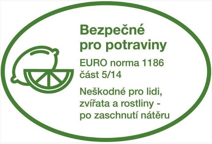 Produkt je odolný vůči slinám a potu, je certifikovaný pro styk s potravinami.