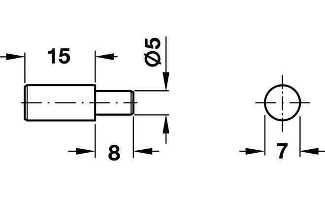 Policová podpěrka, kolíček, 5/7 x 23 NIKL