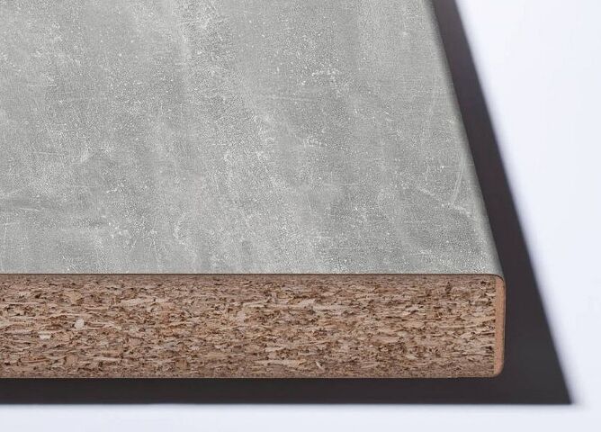 Pracovní deska je vyrobena ze surové dřevotřísky potažené dekoračním vysokotlakým laminátem (HPL) páskem, s použitím
