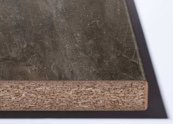 Pracovní deska je vyrobena ze surové dřevotřísky potažené dekoračním vysokotlakým laminátem (HPL) páskem, s použitím