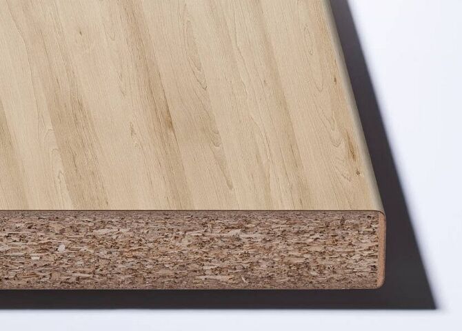 Pracovní deska je vyrobena ze surové dřevotřísky potažené dekoračním vysokotlakým laminátem (HPL) páskem, s použitím