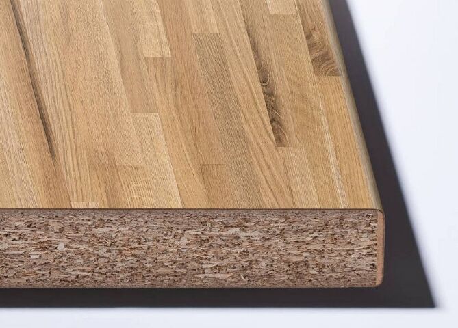 Pracovní deska je vyrobena ze surové dřevotřísky potažené dekoračním vysokotlakým laminátem (HPL) páskem, s použitím