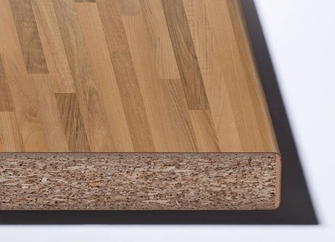 Pracovní deska je vyrobena ze surové dřevotřísky potažené dekoračním vysokotlakým laminátem (HPL) páskem, s použitím