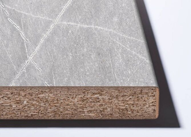 Pracovní deska je vyrobena ze surové dřevotřísky potažené dekoračním vysokotlakým laminátem (HPL) páskem, s použitím