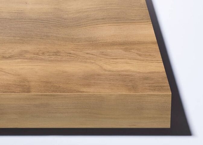 Pracovní deska s rovným okrajem a 1,5 mm ABS hranou vytváří robustní hranatý vzhled.