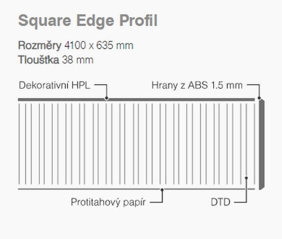 Použití: pracovní desky, stolové desky a pulty