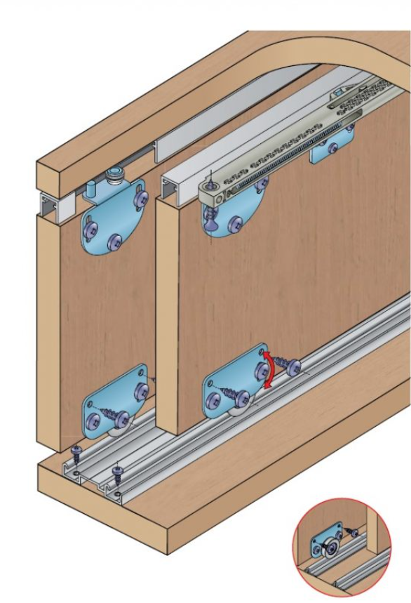 Kování S36 je určeno pro laminovanou nebo dřevěnou výplň s maximální hmotností 35 kg a tloušťkou min. 18 mm. Spodní vedení.