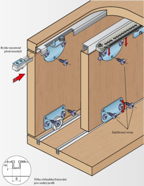 Kování S37 je určeno pro laminovanou nebo dřevěnou výplň s hmotností dveří 35 kg a tloušťkou min. 16 mm.