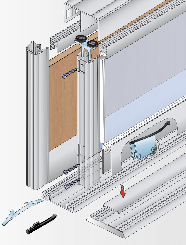 Kování S55 je obdobou kování S65 s tím rozdílem, že je určeno pro výplň nap. lamino o tl. 10 mm a nebo skla 4 a 6 mm. Maximální hmotnost dveří 55 kg.