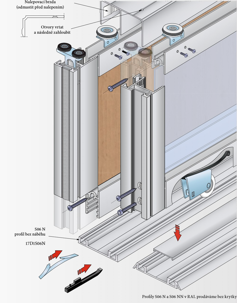 Kování S65 umožňuje použití výplně 18 mm například lamino nebo sklo 4 mm. Hmotnost dveří max 65 kg. Pro možnost výplně  10 mm nebo skla 4 a 6 mm je určeno stejné kování S55.