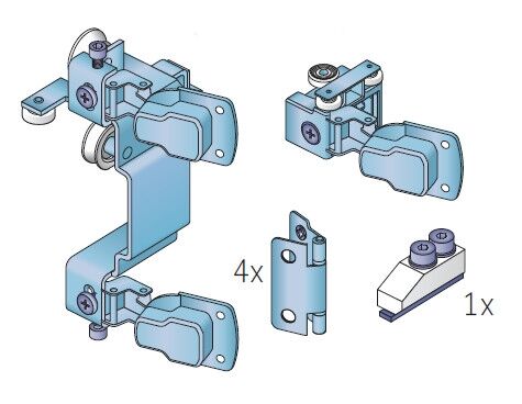S40SD je kování pro skládací dveře s horním zavěšením a uchycením na bok korpusu.