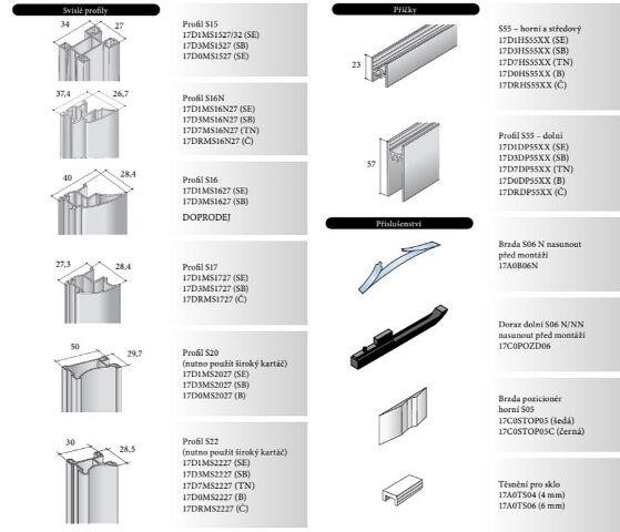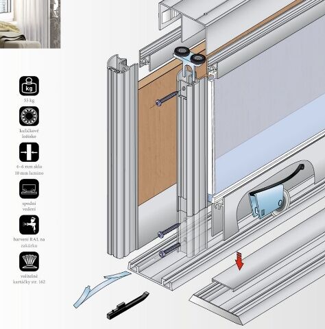 Systém S55 je určen pro použití se sklem tl. 4mm a 6mm nebo plošným materiálem tl. 10mm.