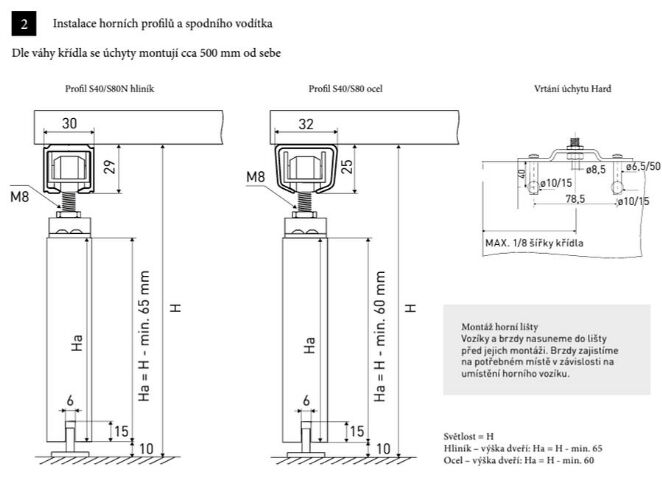 Sada koleček S80 k sysému S80 pro interierové dveře