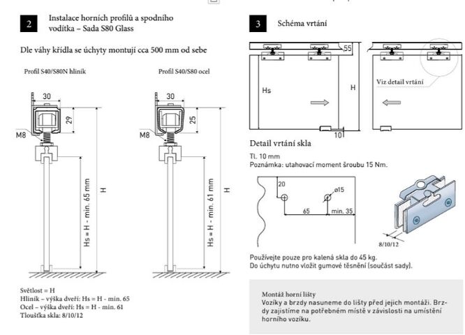 Sada koleček S80 Glass pro posuvné skleněné dveře k Systému S80 pro interiérové dveře