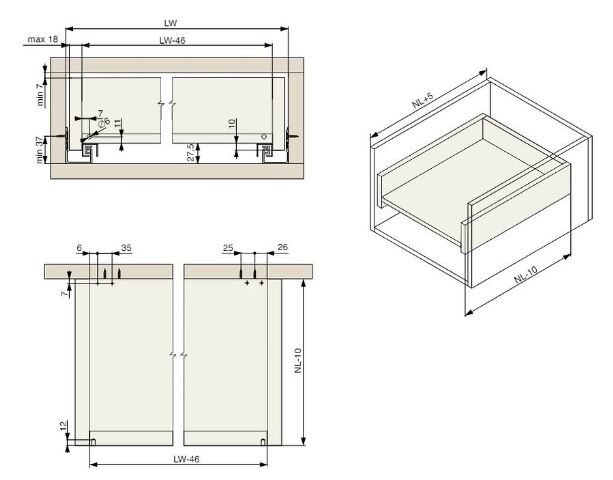 - celková nosnost včetně hmotnosti zásuvky je 25 kg,