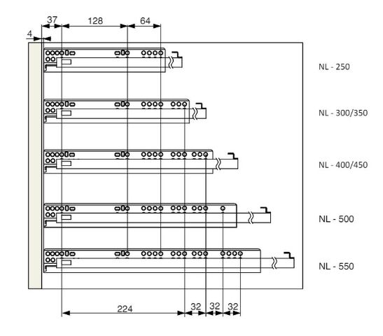 - délka vysunutí je stejná, jako je délka výsuvu (jedná se o celovýsuv)