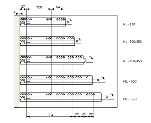 - Skrytý celovýsuv, s tlumením, 25 kg, 550...