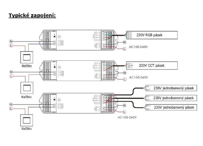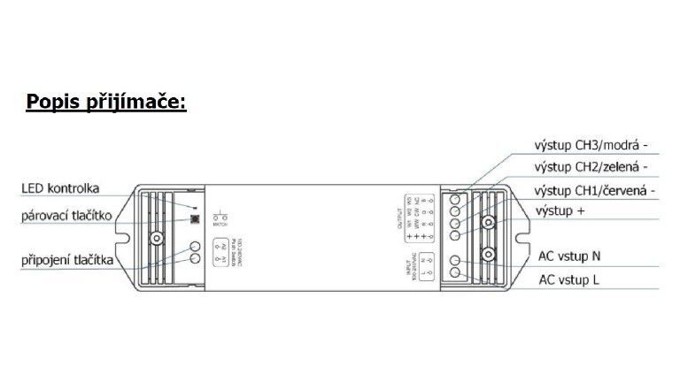 Přijímač dle napárovaného ovladače pozná, zda se jedná o jednobarevné nebo RBG 230V