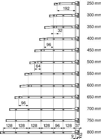 STANDARD - korpusová, střední a výsuvná lišta L+P, 350mm, 25kg