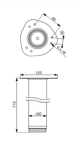Stolová noha, plotnička, D60/H710 mm, chrom mat