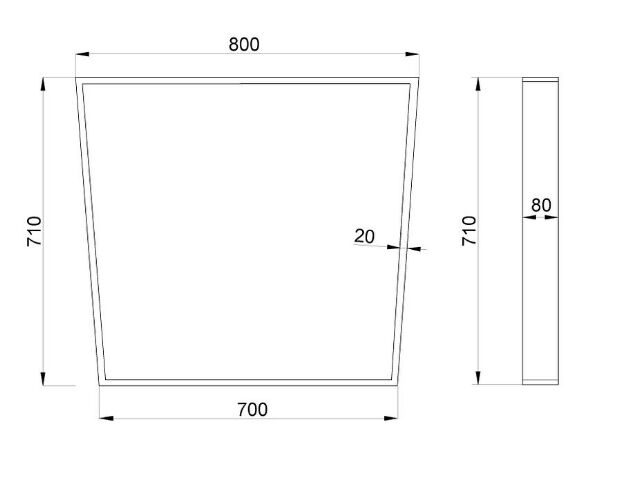 Šířka: (dole) 700 mm (nahotu) 800 mm