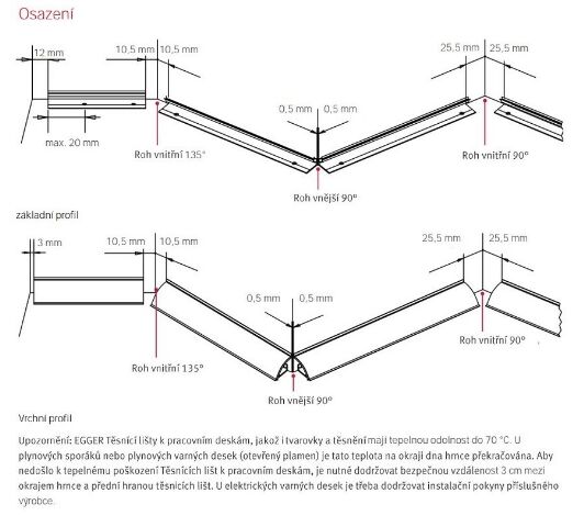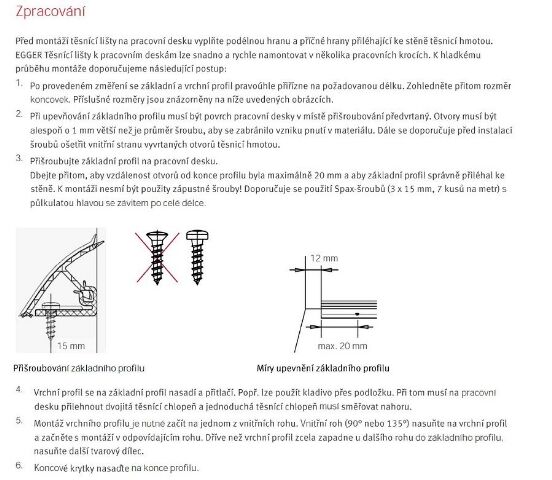 Výhody: - umožňují těsné zakončení desky ke zdi i navzdory nepravidelným spojům