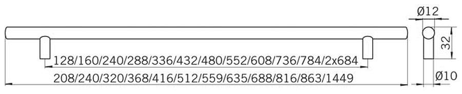 - Úchytka - reling, nikl mat, rozteč: 160...