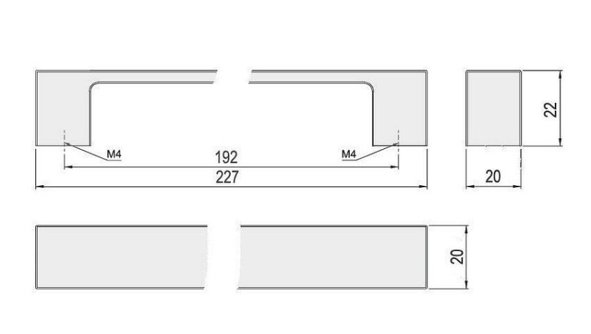 Jednodílná úchytka Nikl-broušená, balená včetně šroubků M4 pro uchycení.