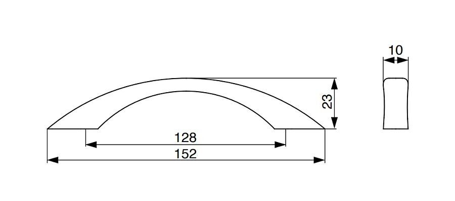 Úchytka kovová, jejíž součástí jsou šrouby k přišroubování na čelo skříňky.