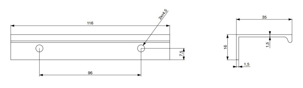Úchytkový šroubovací profil na hranu dvířek, se šroubováním ze zadní strany.