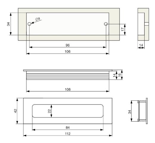 - Úchytka XZ01 zápustná, 96 mm, imitace nerezu