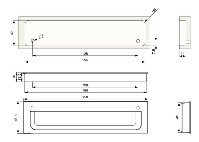 Úchytka zápustná - pro instalaci je třeba v čelním panelu vyhloubit otvor a úchytku poté přišroubovat.