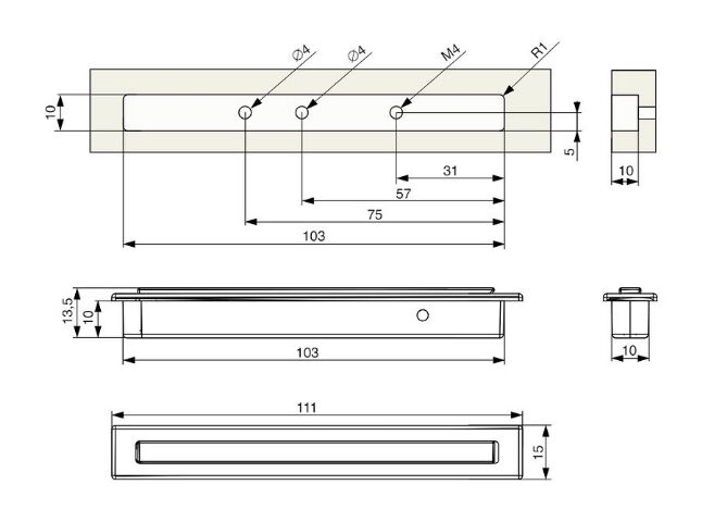 - Úchytka XZ13 zápustná, lesklý chrom