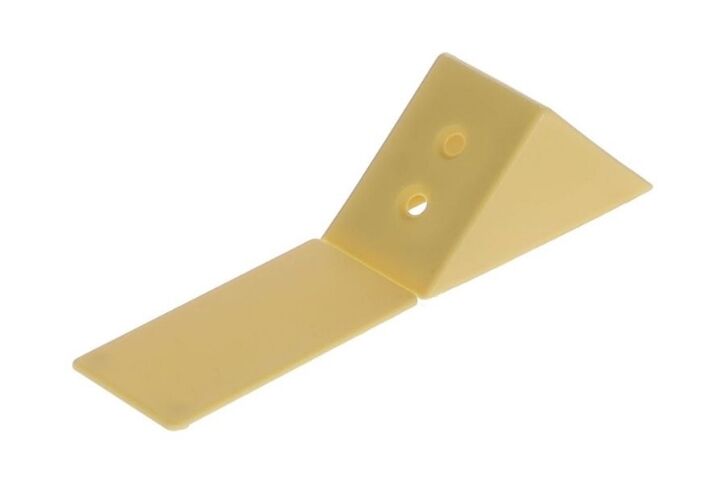 Plastový rohový spojovací element pro T & L spoje desek pomocí šroubů.