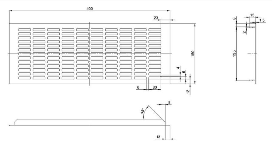 - Hliníková větrací mřížka, 150x400 mm, eloxovaný hliník