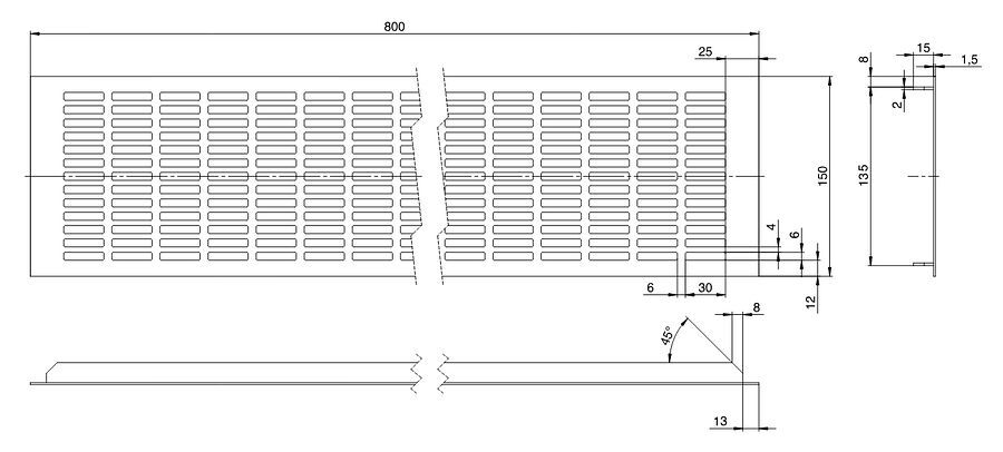 - Hliníková větrací mřížka, 150x800 mm, eloxovaný hliník