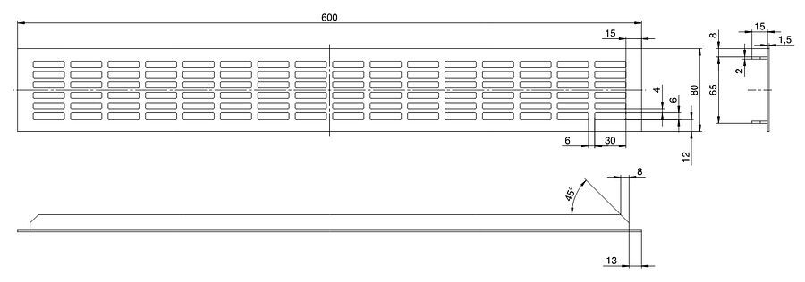 - Hliníková větrací mřížka, 80x600 mm, eloxovaný hliník