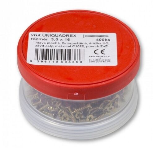 - Vrut 3,0 x 16 zapuštěná hlava, UniQuadrex...