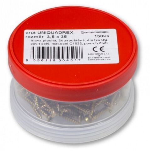 - Vrut 3,5 x 35 zapuštěná hlava, UniQuadrex...