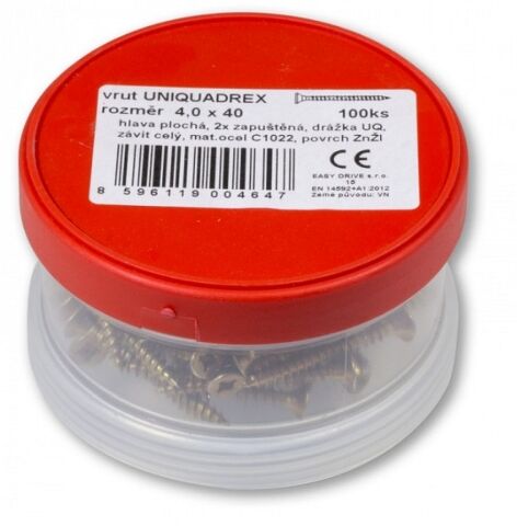 - Vrut 4,0 x 40 zapuštěná hlava, UniQuadrex...