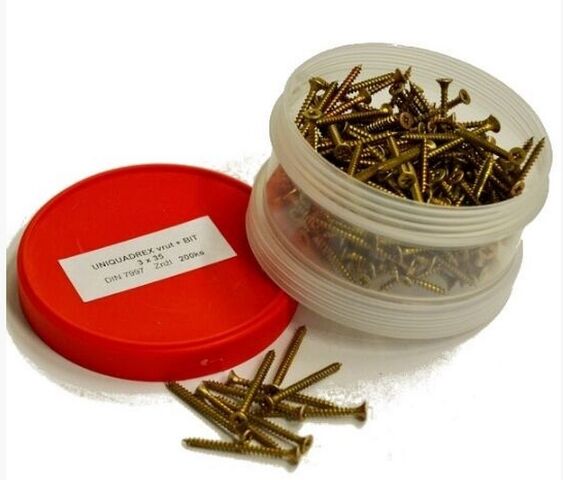 Spojovací materiál s drážkou UNIQUADREX balený v ešusech" je vhodný pro kutili a drobné řemeslníky z důvodu menších