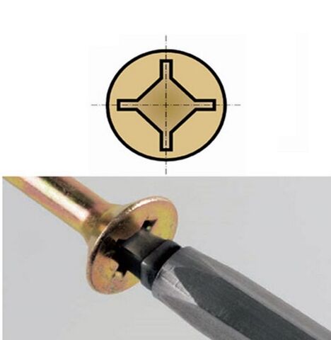 se používá šroubovací nástavec - bit se čtvercovým kónickým hrotem, který zaručí