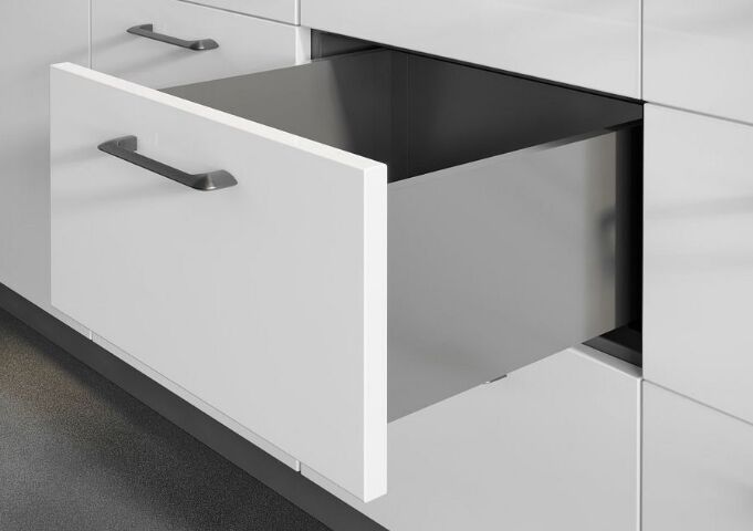 vhodného kuchyňského vybavení. Použitím tenkých bočnic se zásuvka stává