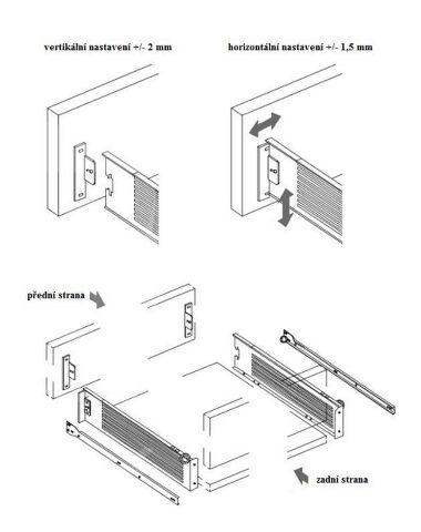 - ocelový výsuv, plastová kolečka na kluzných ložiscích tlumící hluk