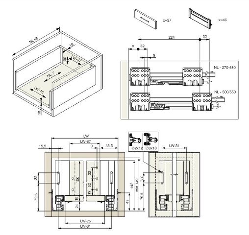 - Výsuv ND60 (18mm) s dvojitou bočnicí, 116/500...