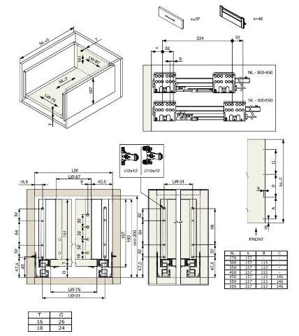 - Výsuv ND60 (18mm) s dvojitou bočnicí, 167/450...