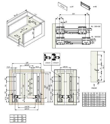 - Výsuv ND60 (18mm) s dvojitou bočnicí, 167/450...