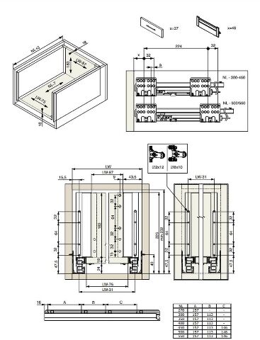 - Výsuv ND60 (18mm) s dvojitou bočnicí, 199/350...