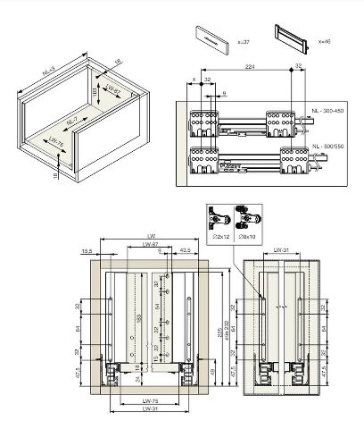 - Výsuv ND60 (18mm) s dvojitou bočnicí, 199/450...